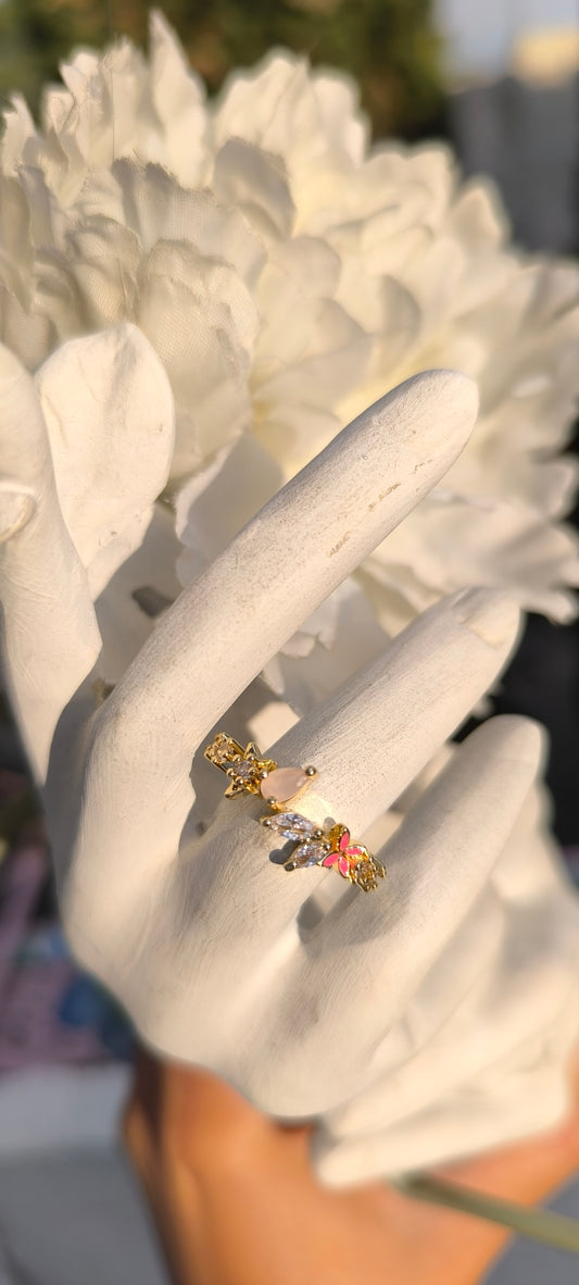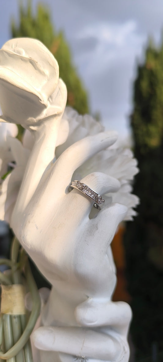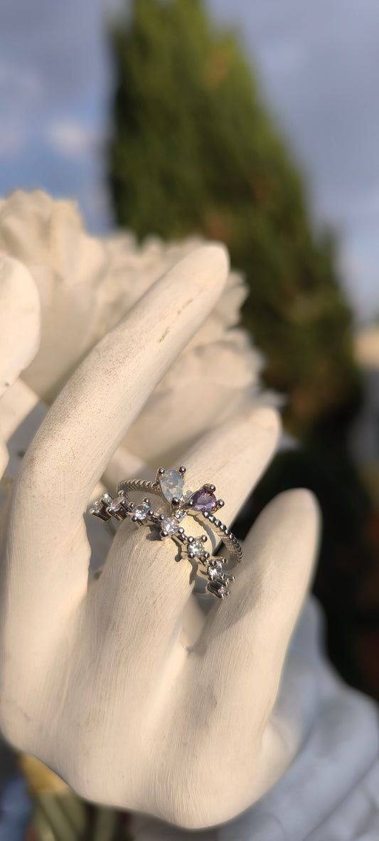 Anillo de doble aro con toques perlados y cristales 🩶✨
