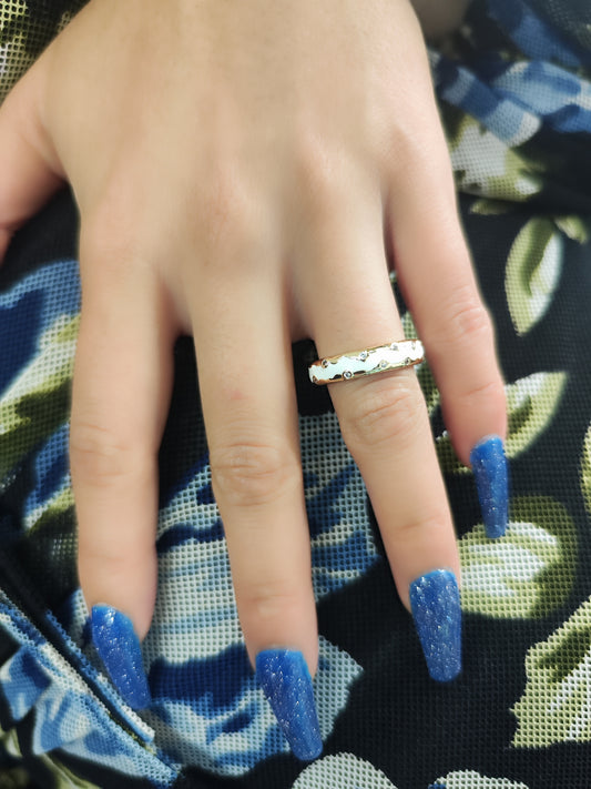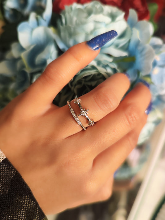 Anillo de doble aro con toques perlados y cristales 🩶✨