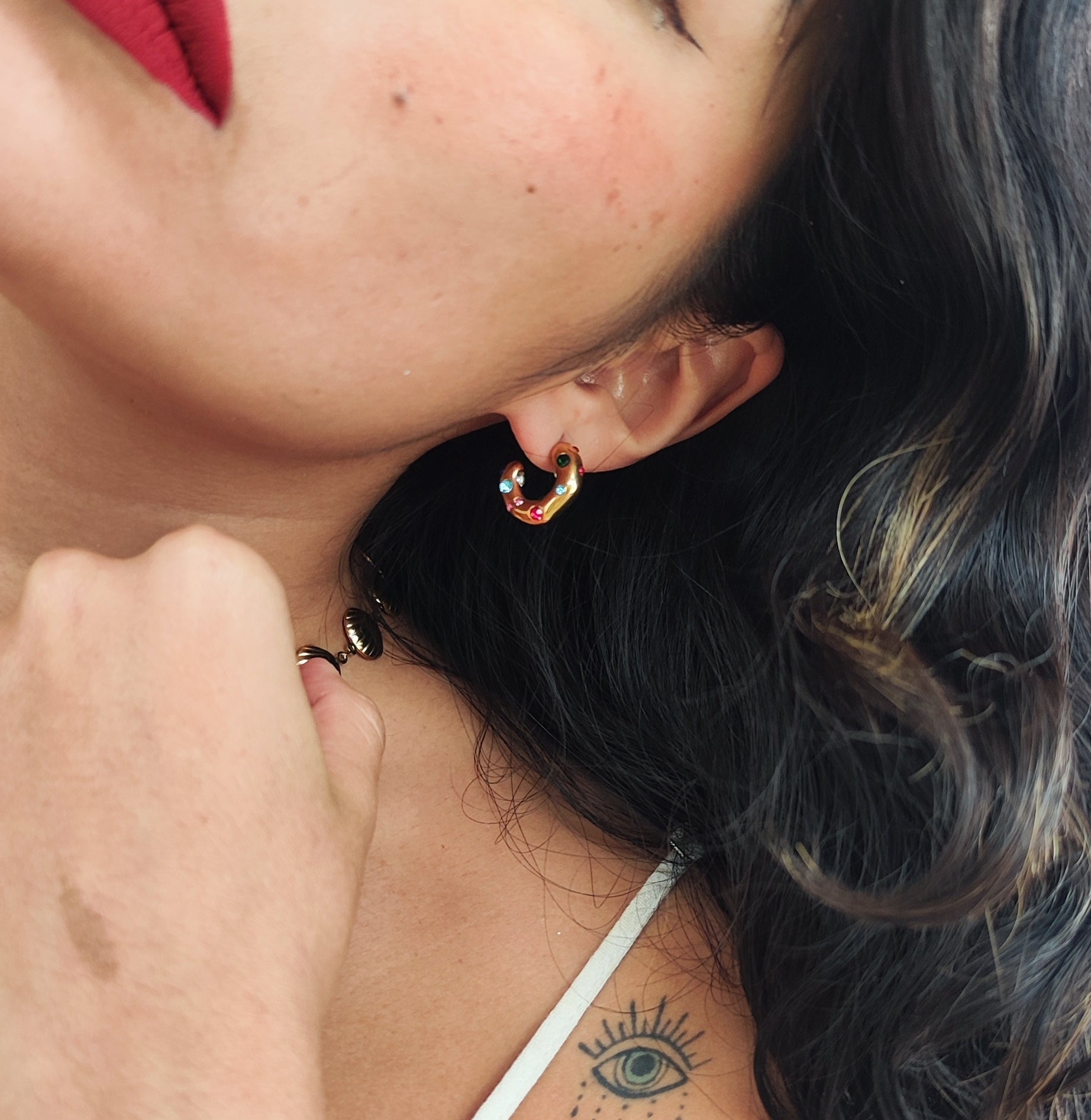 una fiesta de colores de cristales incrustados en estas arracaditas. Lo divertido y brillante es su encanto