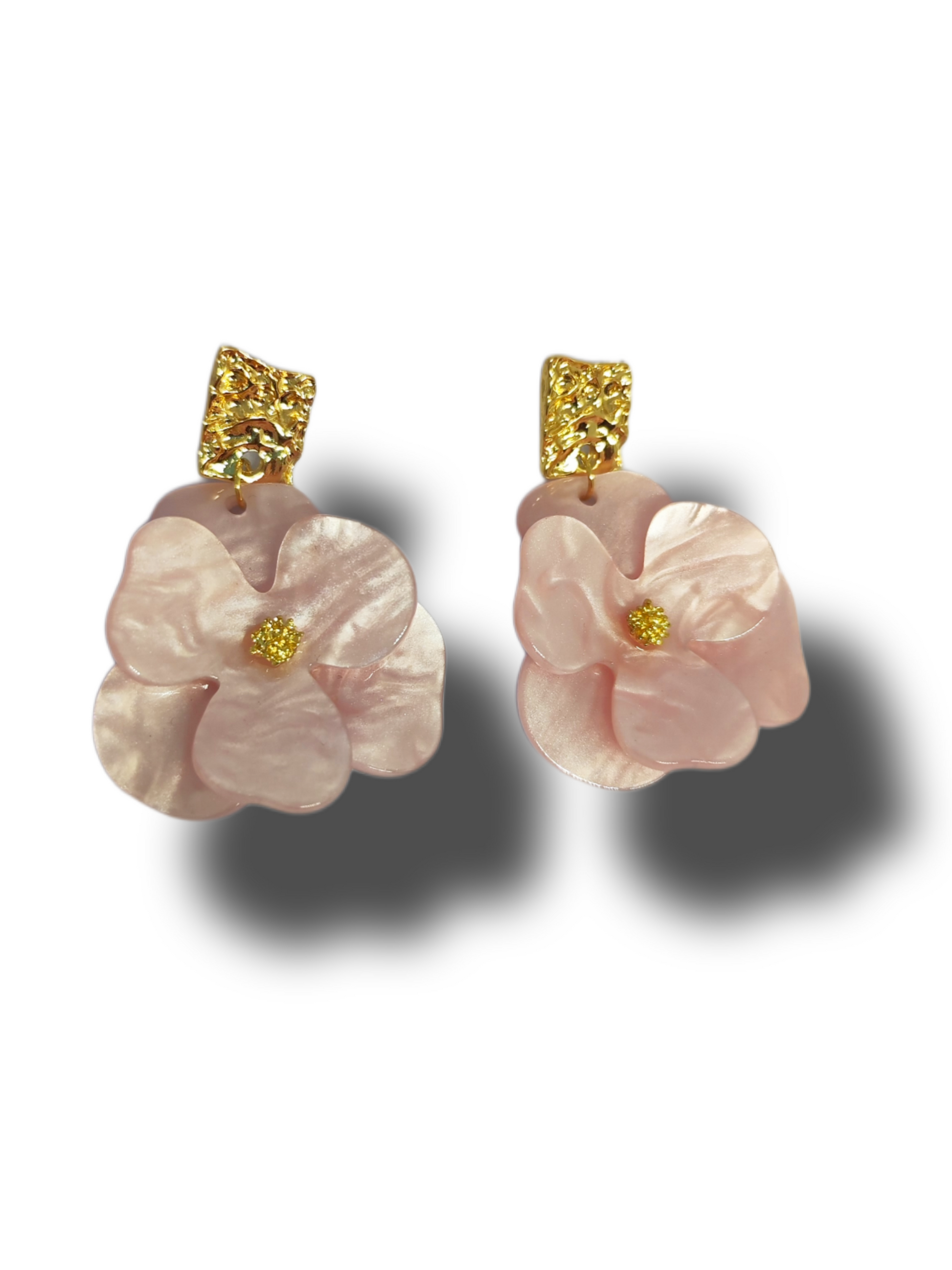 Flores de resina con purpurina perlada que le da un toque muy romantico y floral a este accesorio, el arete perfecto para esta primavera.